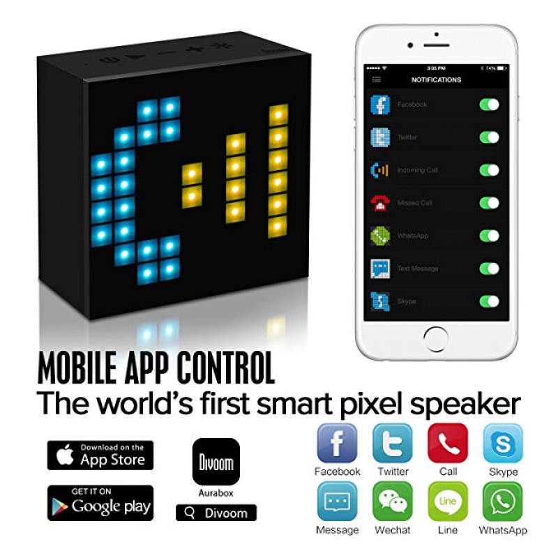The world's first smart pixel speaker! Superior sound quality smart bluetooth speaker with extra BASS. A world class 3” 5-watts speaker professionally tuned by Divoom. Equipped with the latest 3D digital calculation and low-range bass enchantment technology