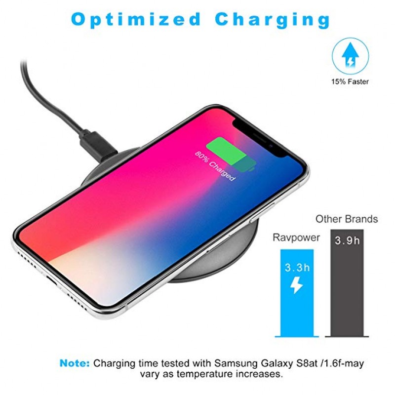 Align your device in the center for high-speed charging (10% faster than other 5W wireless chargers).