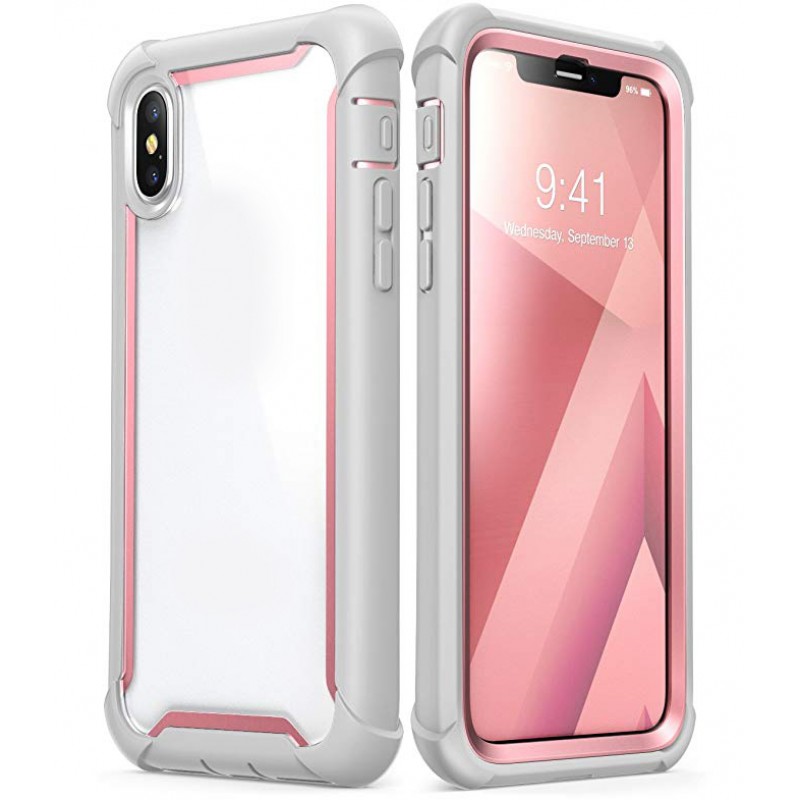 iPhone XS Max Case, Full-Body Rugged Clear Bumper Case with Built-in Screen Protector for iPhone XS Max 6.5 Inch (2018 Release) (Pink)