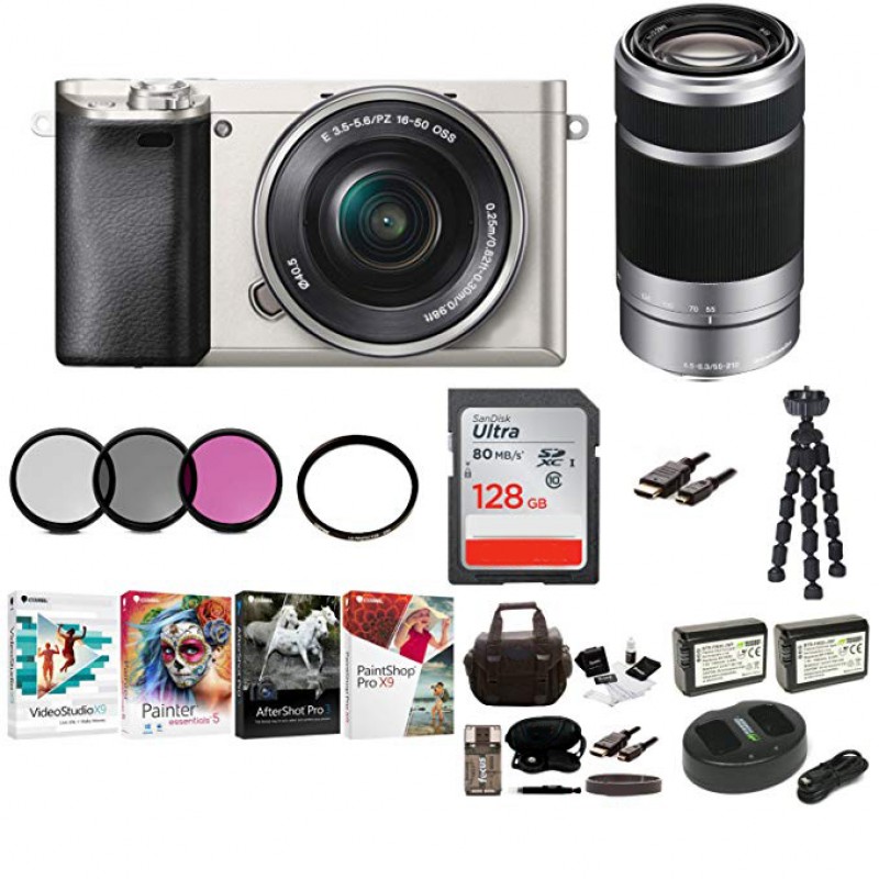 Mirrorless Camera w/16-50mm & 55-210mm Lenses & 128GB Bundle - Silver