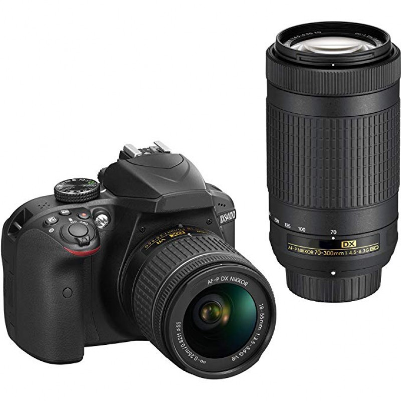 Bundle Includes -18-55 and 70-300 lens / 64GB Memory Card / Telephoto Lens / Wide Angle Lens / 3-Piece Filter Kit / Digital Slave Flash / Wireless Shutter Release / 58" Tripod / DSLR Accessories Bundle with Bag